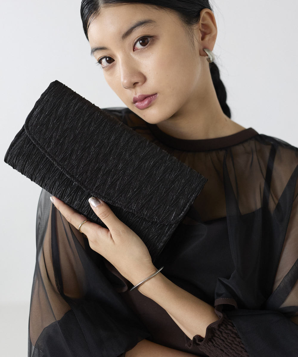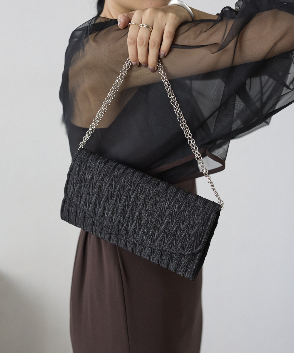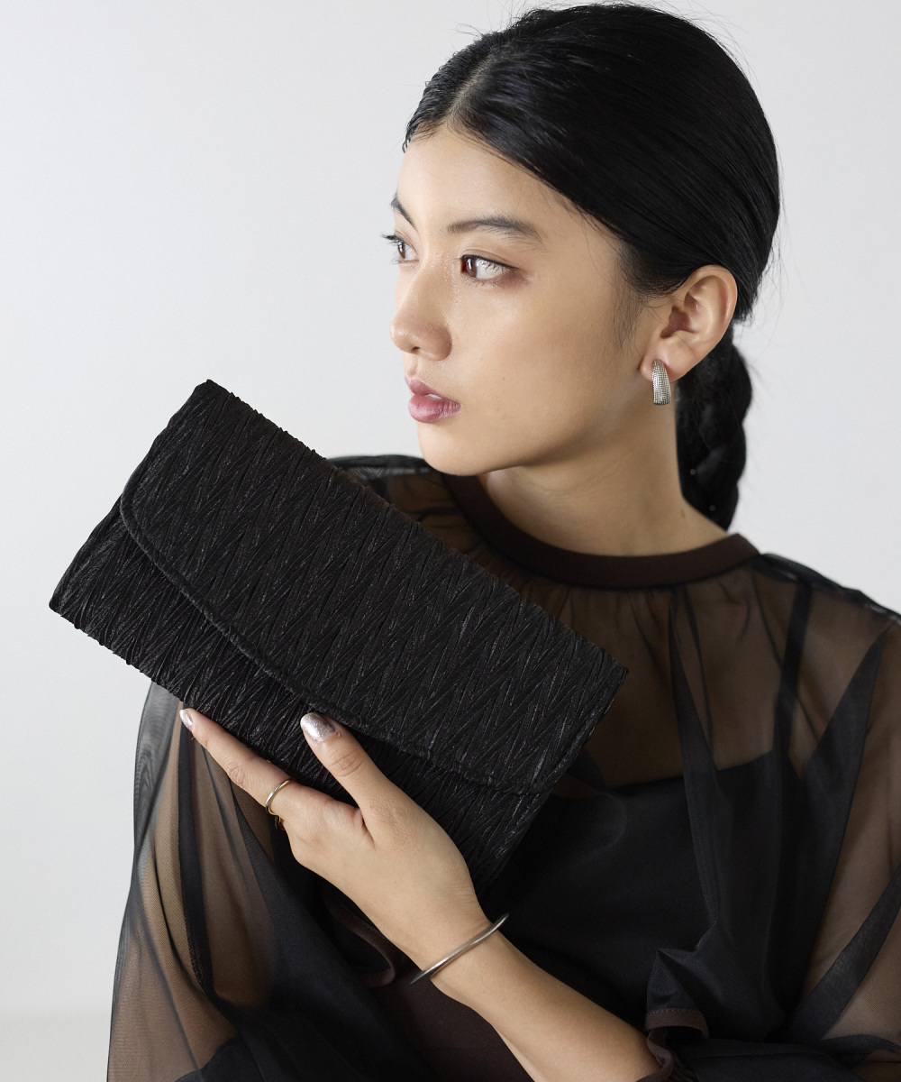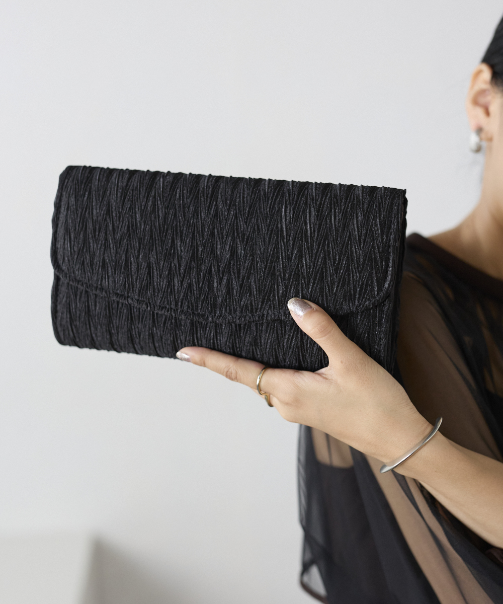 サテンプリーツクラッチバッグ