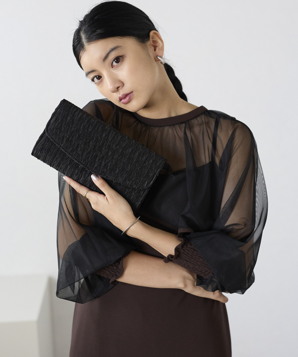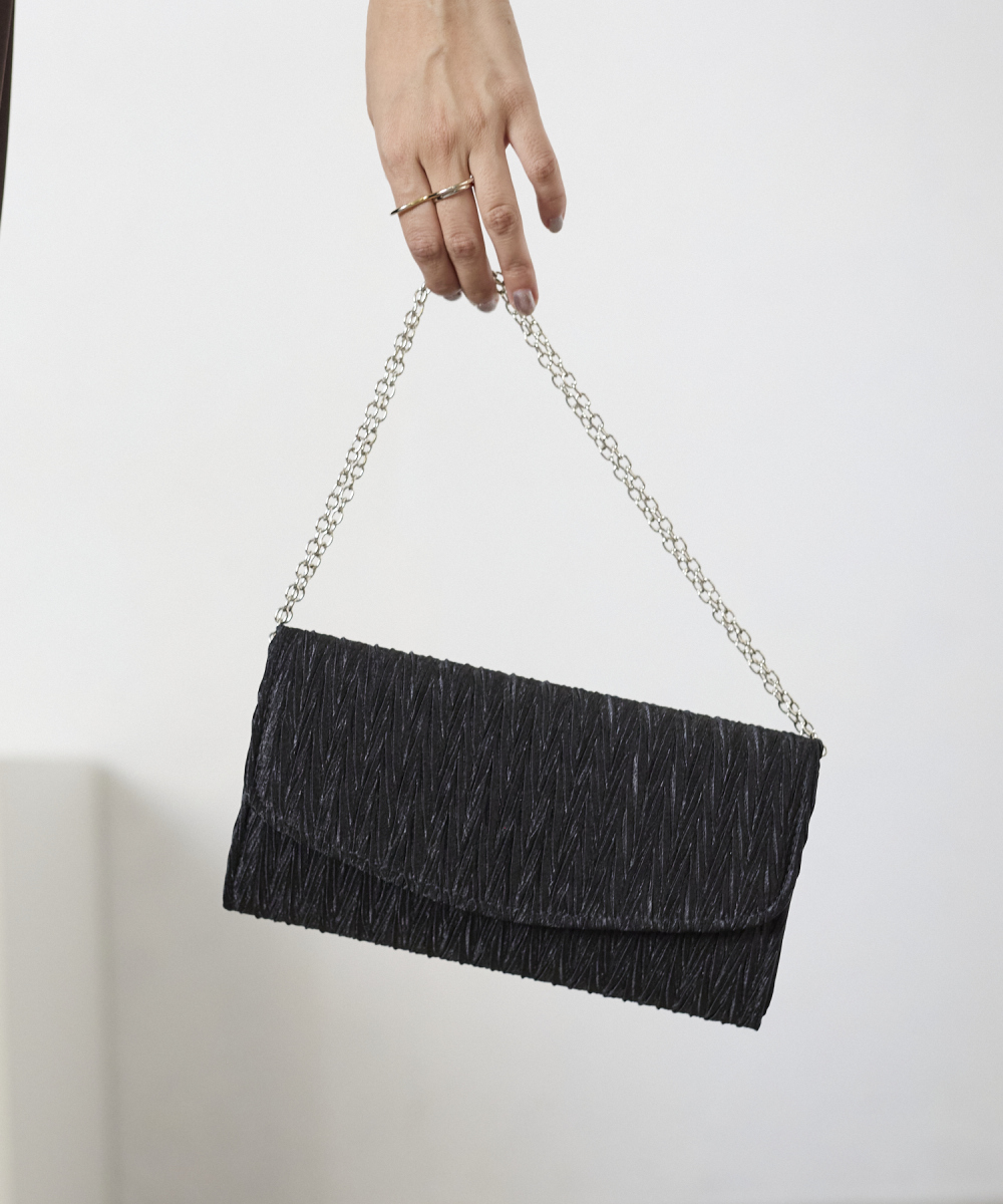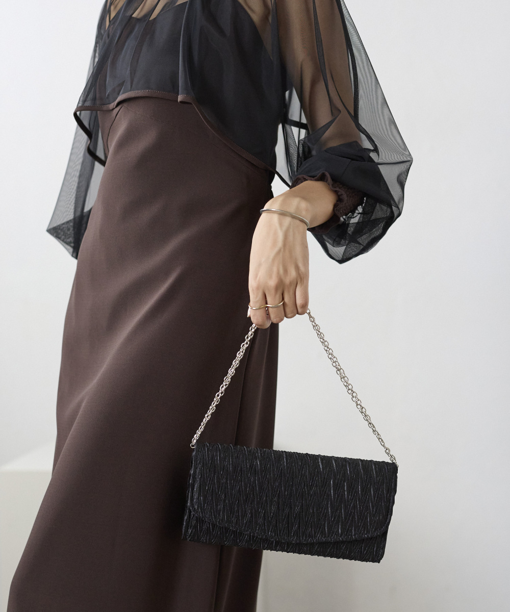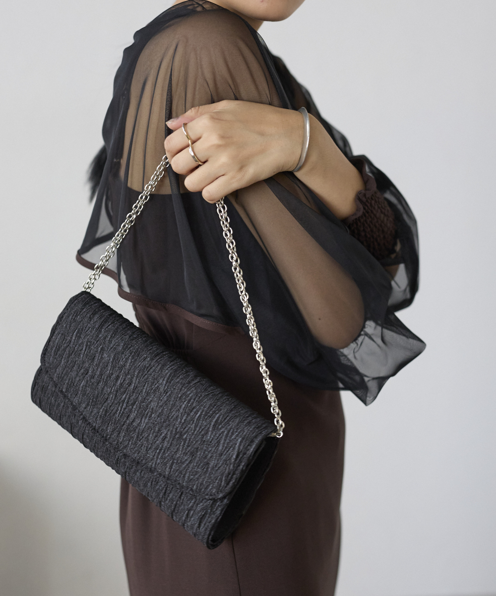 サテンプリーツクラッチバッグ