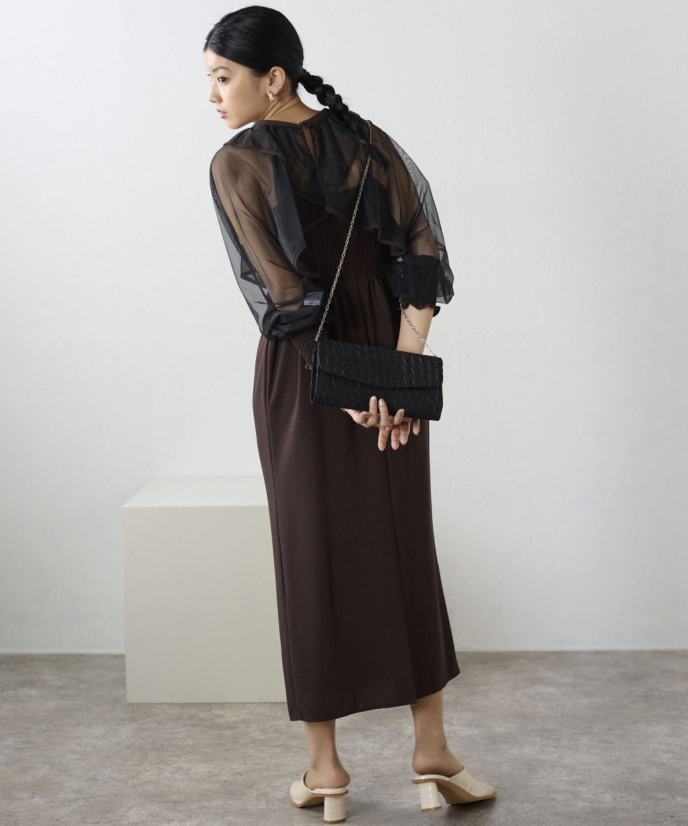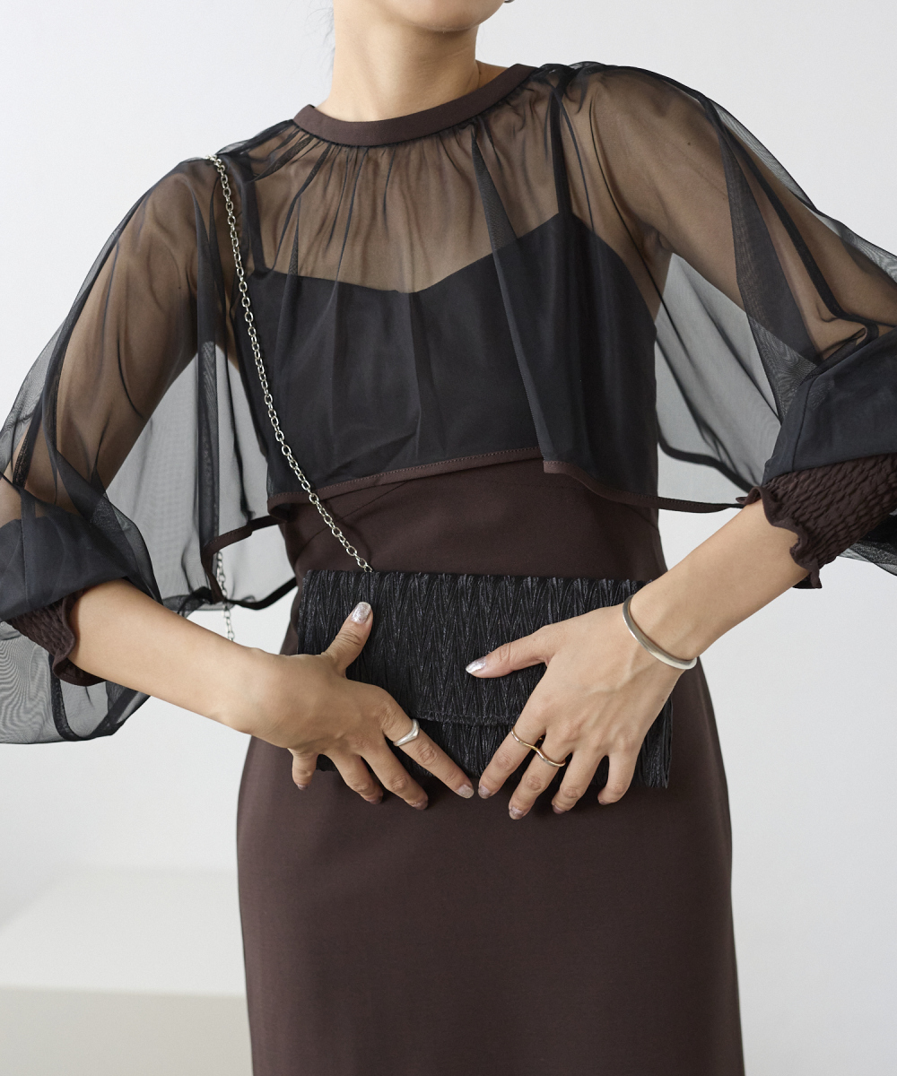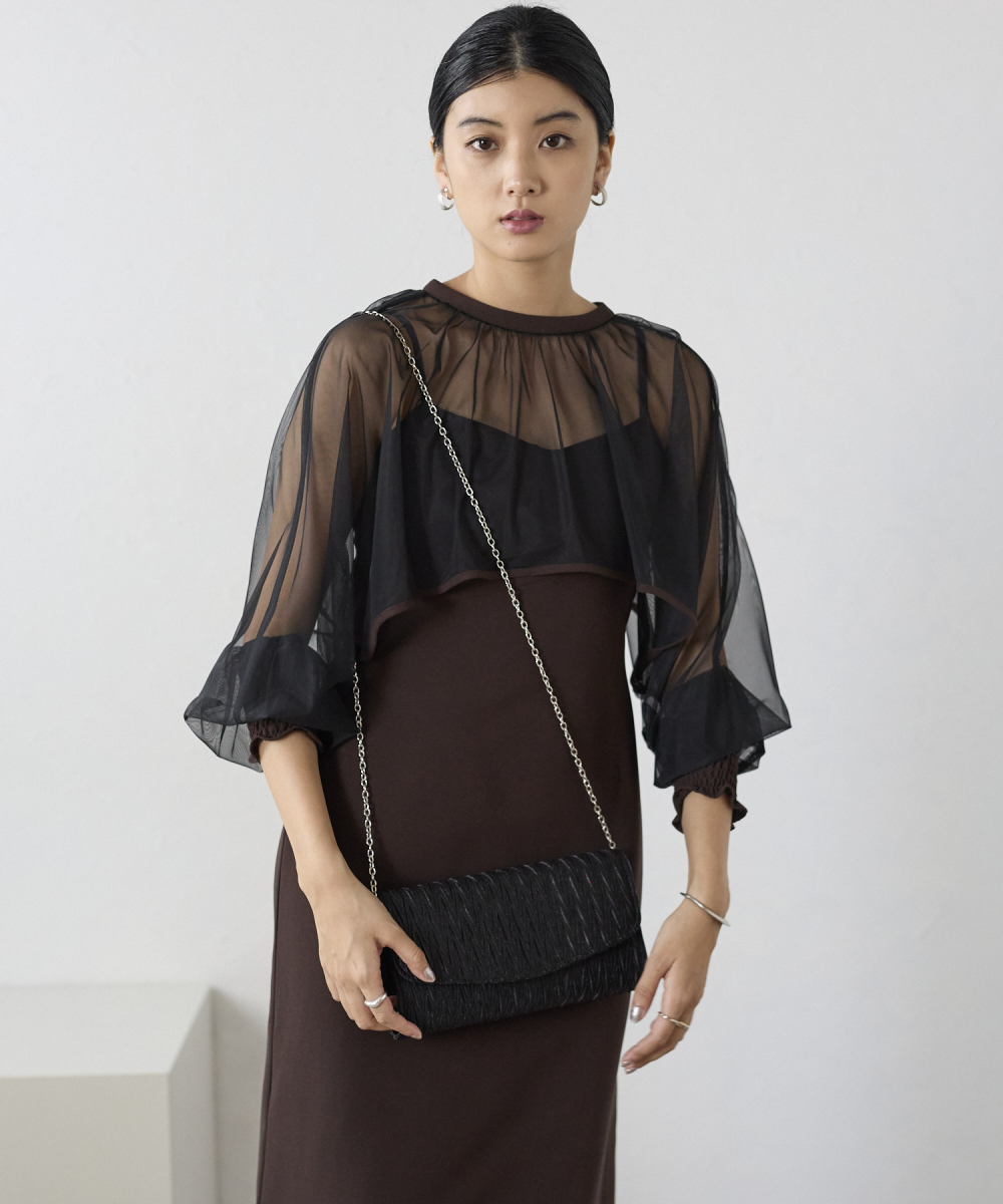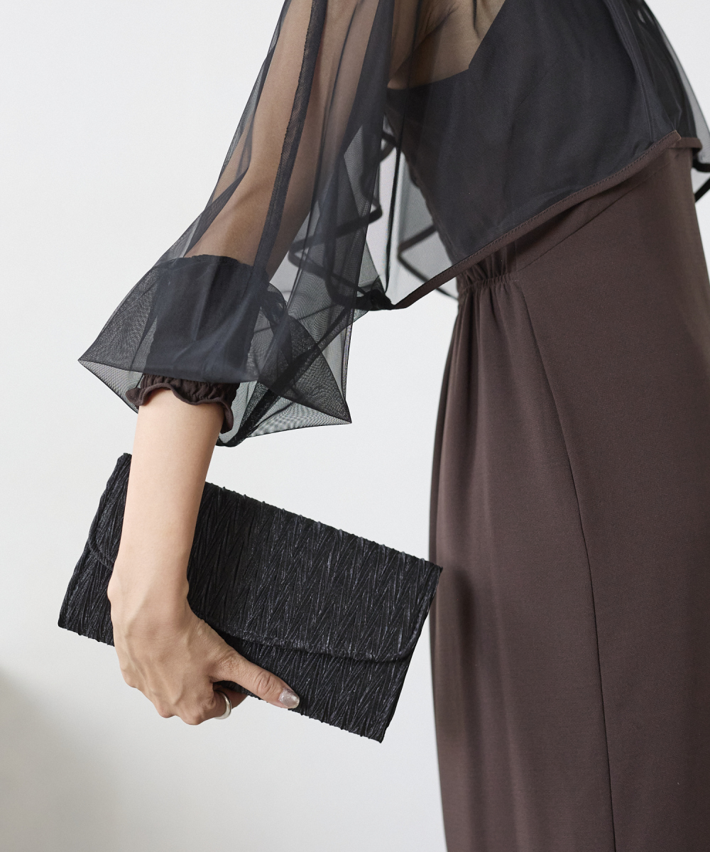 サテンプリーツクラッチバッグ