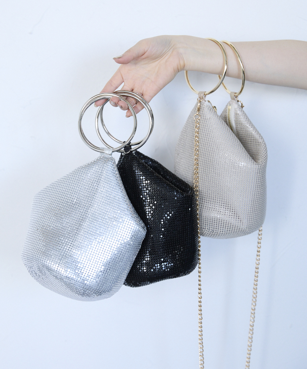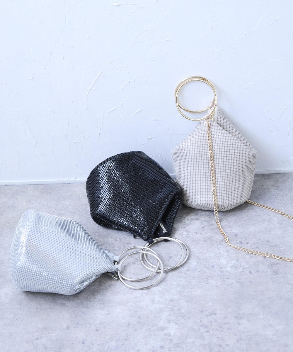 メタルメッシュリングハンドルバッグ